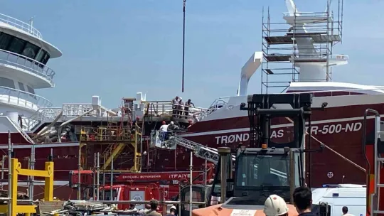 Sepetlınar Mahallesi’ndeki Serbest Bölge’de "TRONDERBAS TR-500-ND" isimli gemide denize indirildikten sonra yangın çıktı. Bu sırada gemide çalışma yapan işçiler kendi imkanlarıyla yangına müdahale ederek söndürdü ancak işçilerden 2’si mahsur kaldı. İhbar üzerine bölgeye AFAD, itfaiye ve sağlık ekipleri sevk edildi. Mahsur kalan 2 işçi, itfaiye ekiplerinin çalışmasıyla gemiden indirilerek, sağlık ekiplerine teslim edildi. Dumandan etkilendikleri belirlenen 4 işçi, sağlık ekiplerinin ilk müdahalesinin ardından hastaneye kaldırıldı.