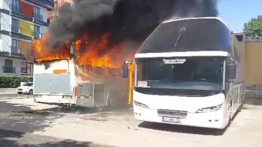 Kocaeli'nin Gebze ilçesinde otoparkta bulunan otobüs alev aldı. Yangında 3 otobüs küle dönerken, aynı saatlerde geri dönüşüm tesisinde de yangın çıktı.