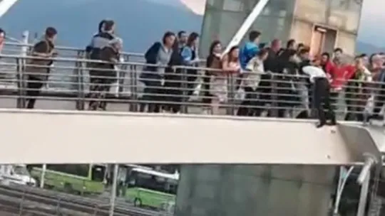 Köprüden sarkan vatandaş yürekleri ağza getirdi