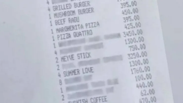 27 bin TL tutarındaki hesap gündem oldu. Hamburgerden pizzaya çeşitli yiyecek ve içeceklerin yer aldığı hesap fişinde suyun fiyatı da tepki çekti.