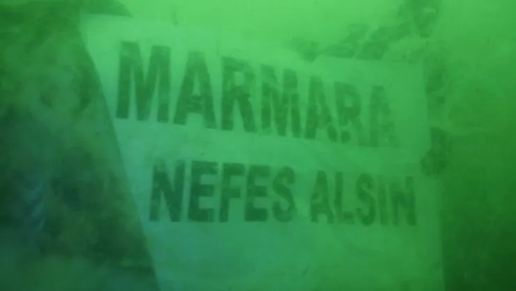 Marmara Denizi'nde büyük çevre felaketine yol açan deniz salyasının yıkıcı etkisini göstererek harekete geçilmesini isteyen dalgıçlar, sualtında 'Marmara Nefes Alsın' pankartı açtı. Dalgıçların açtığı ve güçlükle okunan pankartla, su altındaki kirliliğe dikkat çekildi