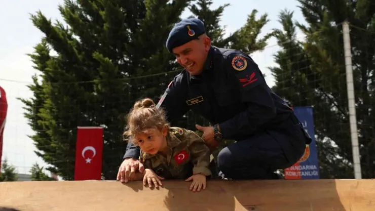 Kocaeli İl Jandarma Komutanlığı'nda misafir edilen çocuklar, hem komando ve köpek timlerinin gösterilerini izledi, hem de kendileri için hazırlanan komando parkurundan geçti.