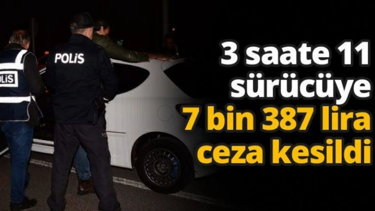 3 saate 11 sürücüye 7 bin 387 lira ceza kesildi