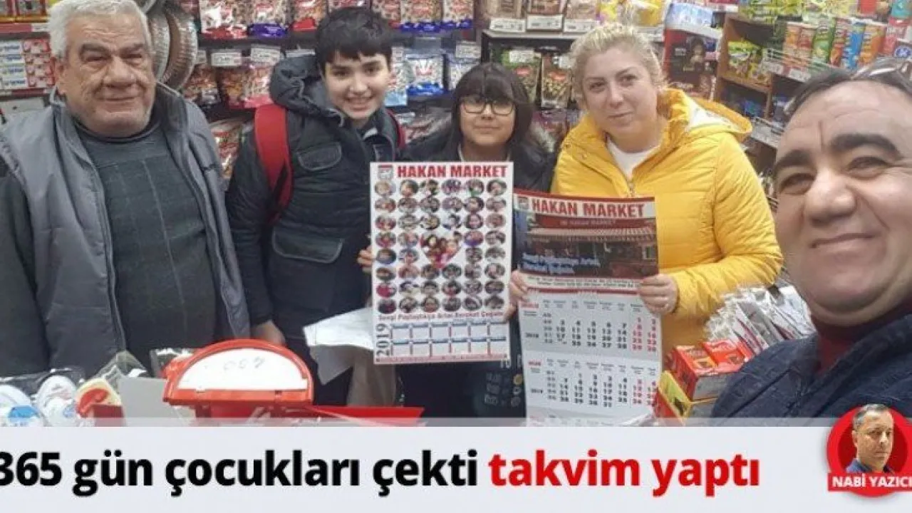 Mahalle de çok tanınan ve sevilen, sosyal yardımlarıyla da takdir toplayan Hakan Tatlı, yıl sonuna yakın topladığı çocuk resimleri ile 2019 yılı takvimini hazırlattı. Seçtiği çocuk resimleri ile takvim kapağını bastıran Hakan Tatlı, daha sonra da çocuklara ve markete gelen müşterilere bunları hediye etti.