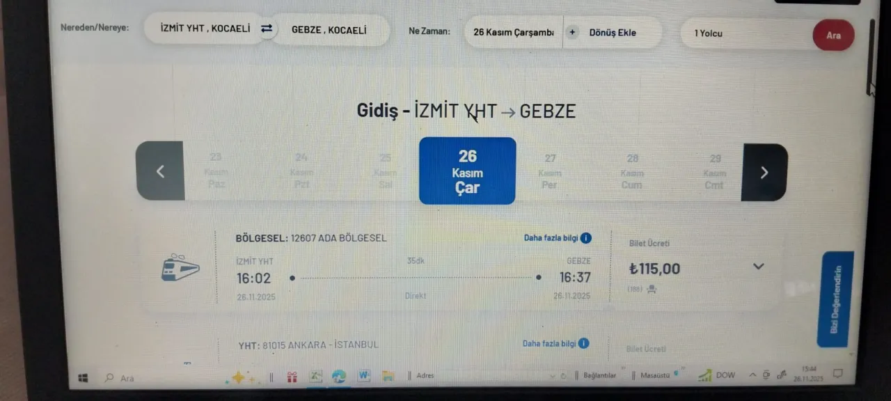 Diğer duraklar arası tren bilet fiyatlar şöyle