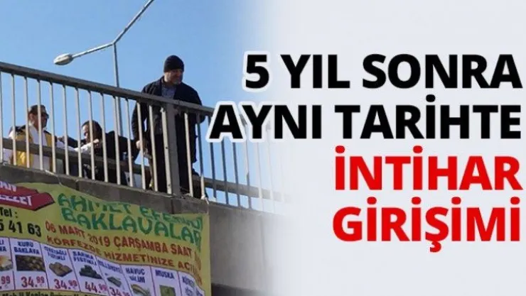 Körfez'de 1 Mart 2014 tarihinde Körfez Kent inşaatlarında alacağını alamadığını iddia ederek intihar girişiminde bulunan İ.K. (48) aradan 5 yıl geçtikten sonra aynı tarihte bu kez Tütünçiftlik viyadüğüne tırmanarak, iddialara göre elinde kuru sıkı tabancayla girişimde bulundu. Şahsa müdahale eden polis ikna ederek, girişimden vaz geçirdi.