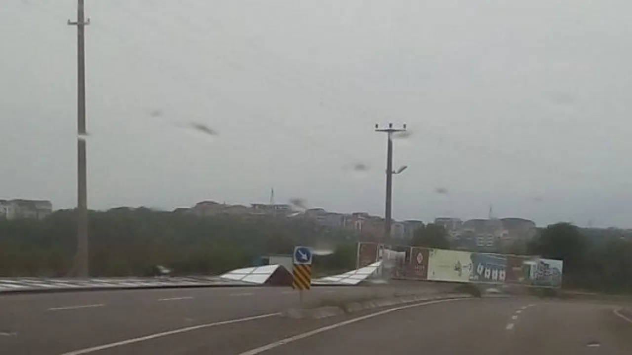 Akven İnşaat'ın reklam panoları yola devrildi!
