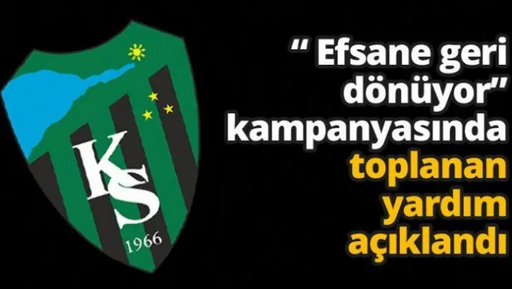 Kocaelispor için ' Efsane geri dönüyor' yardım kampanyasıyla toplanan son bağış miktarları valilik tarafından açıklandı. 10.12.2018 tarih itibariyle 181.696,14 TL yardım topladı.