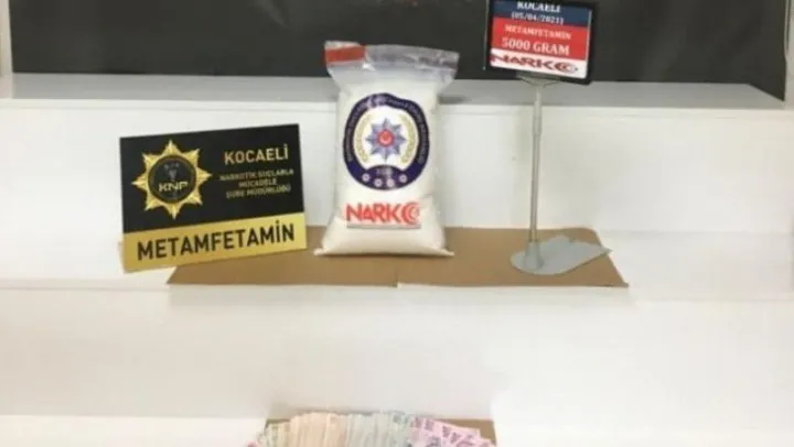 Edinilen bilgiye göre Kocaeli'den geçiş yapacak bir araçta uyuşturucu taşındığı bilgisine ulaşan polis ekipleri, aracı takibe aldı. Takip sonrasında durdurulan araçta yapılan aramada 5 kilo uyuşturucu maddesi ve uyuşturucu satışından elde edildiği düşünülen binlerce lira nakip para ele geçirildi. Metamfetamin olarak bilinen uyuşturucu ile yakalanan 3 kişi ise polis ekiplerince gözaltına alındı. Polis ekipleri olay hakkında inceleme başlattı