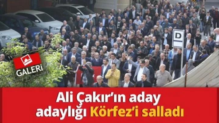 AKP Körfez'de aday adaylık başvuruları bugün de devam etti. Dün 5 kişinin dosya teslim ettiği ilçede, bugün de 5 kişi resmi başvurusunu tamamladı. Bugün dosya teslimi yapan Ali Çakır'ı desteklemeye gelen yaklaşık 1000 kişi adeta Körfez'i salladı. Kalabalık caddeyi kapatırken, ilçe binası salonuna sığmadı.