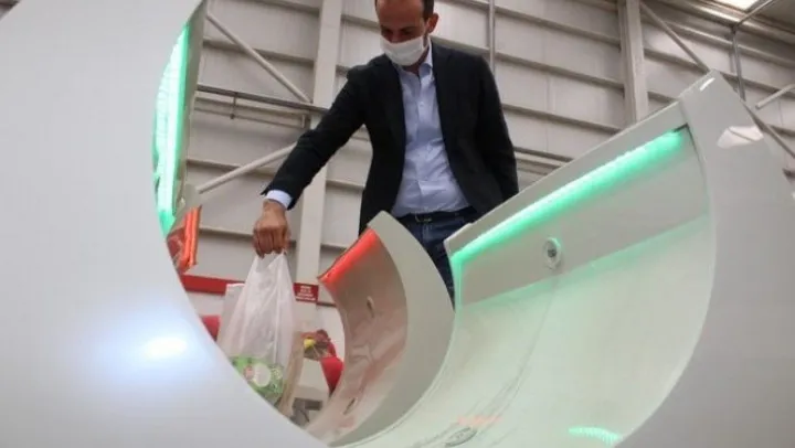Sistemin çok kolay bir çalışma pratiği olduğunu belirten Arat, 'Alışveriş yaptığınız yerden çıktıktan hemen sonra saniyeler içerisinde aldığınız ürünleri poşetle birlikte cihazdan geçirerek elinizle birlikte dezenfekte olmasını sağlıyorsunuz. Aldığınız ürünü saniyeler içerisinde dezenfekte edebiliyorsunuz. Ya da kargolarınızı bu ünite içerisinden geçirip hemen alabiliyorsunuz. Böylece bu virüsün etkilerini önlemiş oluyorsunuz' diye konuştu.
