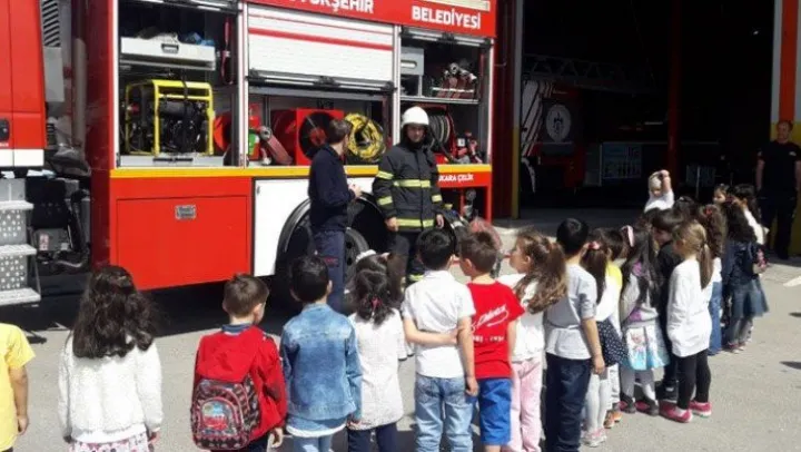 İtfaiye Müdürlüğü'ne konuk olan General Edip Bayoğlu İlköğretim Okulu Ana Sınıfı sabah gurubu öğrencileri, itfaiyeci amcalarından bilgi aldılar. Miniklere sorulan ilk soru itfaiyeci ne yapar olurken, hep bir ağızdan verilen cevapta yangın söndürür, hayvanları ve insanları kurtarır oldu. Bu yanıt sonrasında itfaiyecilerin çalışma alanları, yaptıkları görevler ve kullanılan araçlarla malzemeler gösterilerek miniklere bilgi verildi. Sınıf öğretmenleri Asena Türk ve Gizem Onuralp Kasap'la birlikte konuk olan ana sınıfı öğrencileri itfaiyeci amcalarına teşekkür ettiler.