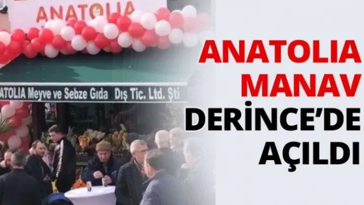 Anatolia Meyve ve Sebze Gıda Dış Ticaret Limited Şirketi tarafından Derince'de açılan Anatolia Manav hizmete girdi. Koray Siyahdemir ve Özgür Köse'nin ortaklığında Hafız Hasan Caddesi No:65 Derince Merkez Camii karşısında kurulan Anatolia Manav'da tüm meyve sebze çeşitleri bulunuyor. Açılışta bilgiler veren firma ortakları Koray Siyahdemir ve Özgür Köse şunları söyledi:'' Bizim amacımız halkın meyve sebze ihtiyacını pazar fiyatları gibi uygun olarak bizden almasıdır. Kar marjımız çok az olup en kaliteli ürünü halkımıza sunacağız. Derince'de bu alandaki önemli bir eksiği kapatacağımızı düşünüyoruz. Kaliteli ve uygun fiyata meyve sebze almak isteyen herkesi Anatolia Manav'a bekliyoruz.''dedi.
