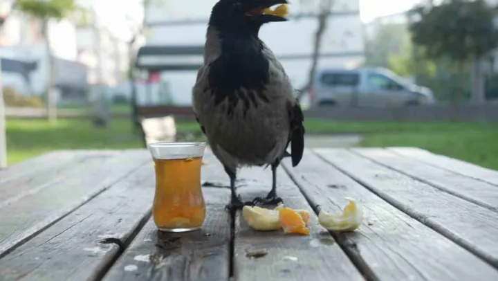 Bu karga çay içip Rize helvası yiyor: Organik gıdaları seviyor