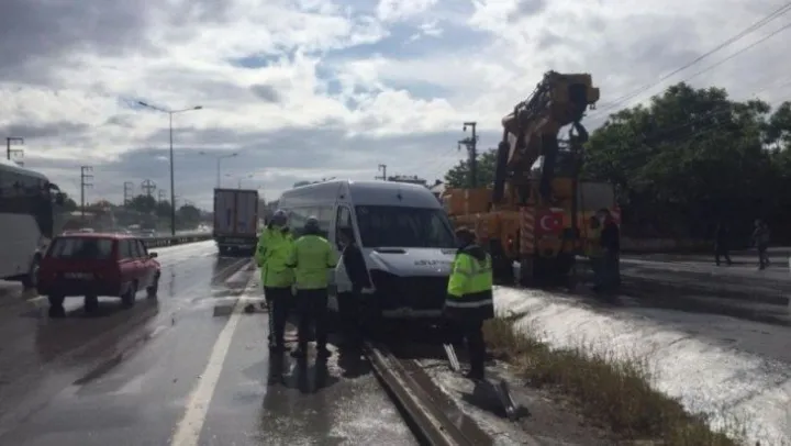 Kaza, Kocaeli'nin Gebze ilçesi D100 karayolu Gebze Sultanorhan Mahallesi mevkisinde meydana geldi. Edinilen bilgilere göre, İstanbul istikametinde seyir halinde olan 10 araç yağmur nedeni ile kayganlaşan yolda duramayarak çarpıştı. Kazaya karışan tırın sürücüsü Turgay Y. Araç içerisinde sıkışırken, servis minibüsünde bulunan 2 kişi yaralandı. Kazayı gören çevredeki vatandaşlar durumu hemen 112 acil yadım ekiplerine bildirdi. İhbar üzerine olay yerine sağlık, itfaiye ve polis ekipler sevk edildi. Kısa süre sonra olay yerine gelen itfaiye ekipleri tarafından araçta sıkışan Turgay Y. kurtarıldı.