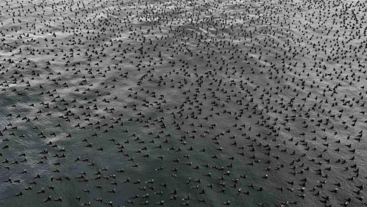 Havadan kaydedilen görüntüler, karabatakların sürü davranışını ve Marmara Denizi'nin kış aylarındaki ekolojik yapısını net şekilde ortaya koydu. Uzmanlar, bu tür doğa olaylarının bölgenin biyolojik çeşitliliği açısından önem taşıdığına dikkat çekiyor.