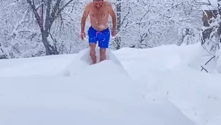 Eksi 10 dereceyi aldırmadan şortuyla karda yüzdü