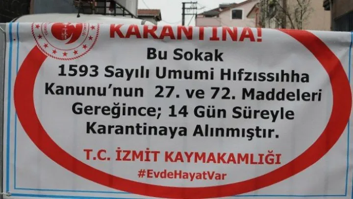 İzmit'e bağlı Mehmet Ali Paşa Mahallesi'nde bulunan Müjde Sokak, koronavirüs tedbirleri kapsamında karantinaya alındı. Sokağa giriş ve çıkış yapılmaması için polis ekipleri tarafından barikat kuruldu. Sokağın girişine İzmit Kaymakamlığı'nca 'Bu sokak 1593 sayılı Umumi Hıfzıssıhha Kanunu'nun 27. ve 72. maddeleri gereğince 14 gün süreyle karantinaya alınmıştır' yazısı asıldı.