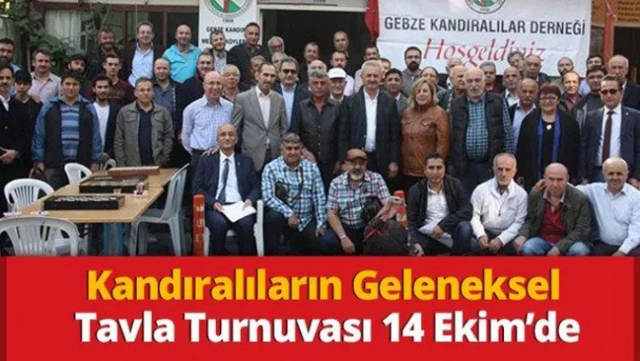 Gebze Kandıralılar Derneği'nin son iki senedir Cumhuriyet Kupası diye adlandırdığı geleneksel tavla turnuvasının 14'ncüsü 14 Ekim'de gerçekleşecek