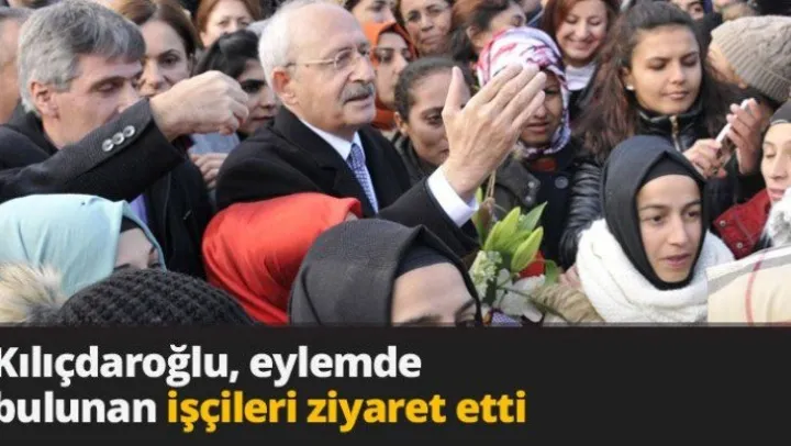 CHP Genel Başkanı Kemal Kılıçdaroğlu, sendikalı oldukları gerekçesiyle işten çıkartılan ve 213 gündür fabrika önünde eylem yapan işçilere destek ziyaretinde bulundu. Bir süre, çoğunluğu kadın olan işçiler ile oturan Kılıçdaroğlu, 'Şunu hiç kimse unutmasın. Türkiye'de kadınlar bir şeye itiraz ediyorlarsa, mutlaka sonucunu alırlar' dedi.