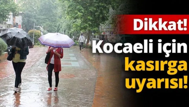 Pazar günü Marmara'nın batısında şiddetli fırtına beklenirken Meteoroloji Genel Müdürlüğü'nden Kocaeli için bugün bir uyarı geldi. Yapılan açıklamada 'Son tahmin ve analizlere göre, Orta Akdeniz'de oluşan tropik fırtınanın doğuya doğru hareket ederek, 30.09.2018 Pazar günü bölgemizi etkilemesi beklenmektedir. Pazar günü sabah ilk saatlerden itibaren Marmara'nın batısında kuzey ve kuzeydoğu yönlerden fırtına şeklinde eseceği tahmin edilmektedir.' denildi.
