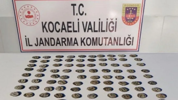 Kocaeli'nin Kandıra ilçesinde jandarma ekiplerince durdurulan iki araçta yapılan aramalarda 100 adet tarihi eser sikke ile yakalan 7 kişi gözaltına alındı.