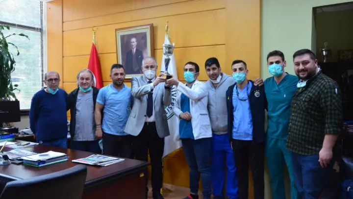 Kocaeli Üniversitesi Hastane çalışanları aldıkları kupayı Kocaeli Üniversitesi Hastanesi Başhekimi Prof.Dr. Nuh Zafer Cantürk'e teslim ettiler. Hocamızın olabildiğince her maçta yanlarında olduğunu belirten çalışanlar destekleri için ayrıca teşekkür ettiler. Kocaeli Üniversitesi Hastanesi Başhekimi Cantürk maçı kazanan çalışanları ayrıca tebrik ederek başarılarını kutladı, kendileriyle gurur duyduğunu ifade etti.