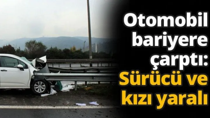 İzmit'te, sürücüsünün kontrolünü kaybettiği otomobil yol ayrımında bulunan bariyere çarptı. Demir bariyer otomobilin motor kısmına girerken, baba ve kızı yaralandı.
