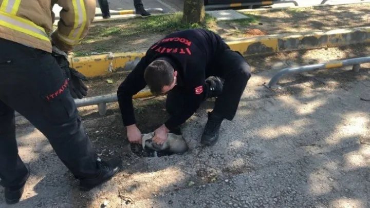 Kocaeli'nin İzmit ilçesinde bulunan büyükşehir belediyesi otoparkında iki yavrusu ile dolaşan anne köpek, yavrularının çukura girerek sıkışması ile havlamaya başladı. Sesler üzerine bölgeye gelen çevredeki vatandaşlar, köpekleri çukurdan çıkartamayınca itfaiyeden yardım istedi. Olay yerine gelen itfaiye ekipleri yavru köpekleri sıkıştıkları yerden çıkartarak, kurtardı. Yavrularını bekleyen anne köpek iki yavrusunun kurtulmasıyla bölgeden uzaklaştı. İtfaiye ekipleri açık olan çukuru köpeklerin tekrar girmemesi için taşla kapattı