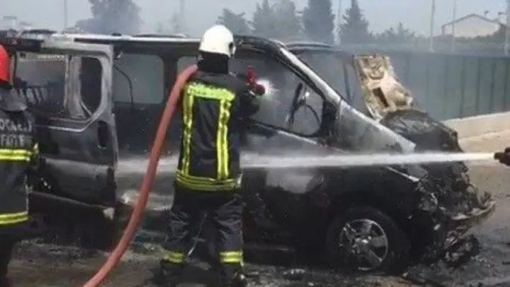 Park halindeki minibüs alev alev yandı