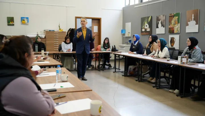 Günler öncesinden dolan master class eğitimi Seka Sanat İhtisas Merkezi'nin eğitim atölyesinde gerçekleştirildi. Üst düzeyde resim bilgisi olan vatandaşların katıldığı eğitimde ilk olarak, sanatın insan hayatına yönelik olumlu etkileri üzerinde duruldu. Ressam Cemal Toy, eğitime katılan sanatseverlere nefes teknikleri uygulattı. Katılımcılar, bu sayede sanatı bir terapi aracı olarak deneyimleme şansı yakaladı. Bunun yanı sıra renklerin, dokuların ve ifadelerin iyileştirici gücü de hep birlikte keşfedildi.