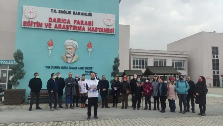 KESK'e bağlı Sağlık Emekçileri Sendikası (SES) Kocaeli Şube Başkanlığı 14 Mart Tıp Bayramı dolayısıyla basın açıklaması yaptı. Darıca Farabi Araştırma Hastanesi önünde yapılan açıklamada sendika temsilcileri, Sağlık Bakanı Dr. Fahrettin Koca'nın yazdığı mektuba karşılık verdiler.