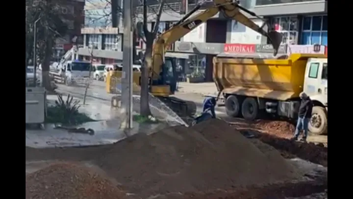 Körfez Mimar Sinan Mahallesi Şehit Erdoğan Çöpoğlu Sokak'ta devam eden alt yapı çalışmaları sırasında kepçenin darbesiyle su borusu patladı