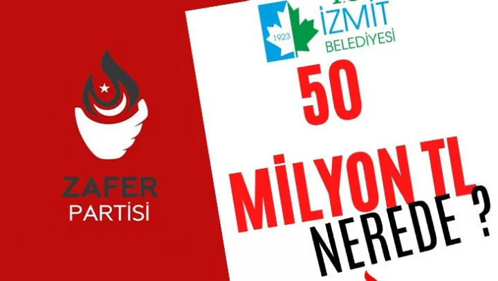 Zafer Partisi Kocaeli İl Başkanı Vedat Çalık ve yönetimi, İzmit Belediye Başkanı Fatma Kaplan Hürriyet hakkında ortaya atılan iddialar sebebiyle '50 milyon nerede?' sloganıyla hazırlattıkları pankart ile bugün Belsa Plaza'ya yürüyeceklerini duyurdu