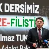 Batı ülkelerinin soykırımı yapanlara ortaklık ettiğini belirten Bakan Tunç, "Filistin ve Gazze konusunda konuşulacak söz kalmadı. Maalesef 7 Ekim’den bu yana 2 yılı aşkın süredir bir soykırım suçu işlendi. Ve Filistin’de 68 binden fazla Filistinli şehit edildi. Bunun yüzde 80’ini kadın ve çocuklardan oluşuyor. 20 bini aşkın çocuk, yani her gün 1 sınıf dolusu çocuk katledildi. Dünyanın gözü önünde çocuklar, kadınlar katledilirken ne çocuk haklarından bahsedenler, ne kadın haklarından bahseden batılıların hiç sesi soluğu çıkmadı. Adeta oradaki katliama destek verircesine politika izlediler, soykırımcıları ziyaret ettiler. Soykırımcılar kendi ülkelerinde ağırladılar, alkışladılar. O soykırım suçunu işleyenlere adeta ortak oldular" şeklinde konuştu.