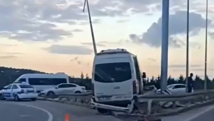 Kocaeli'nin Gebze ilçesinde yol ayrımındaki bariyere çarpan servis aracının sürücüsü yaralandı.