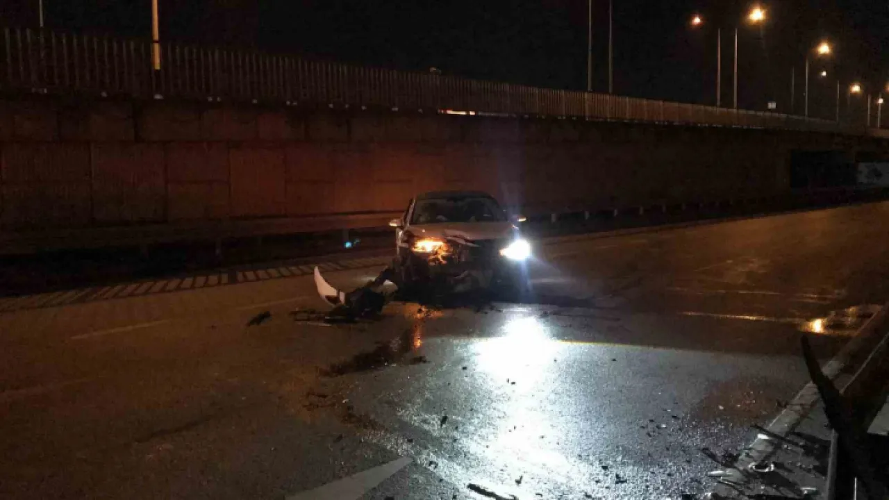Bariyerlere çarpan otomobil yolun ortasında durabildi