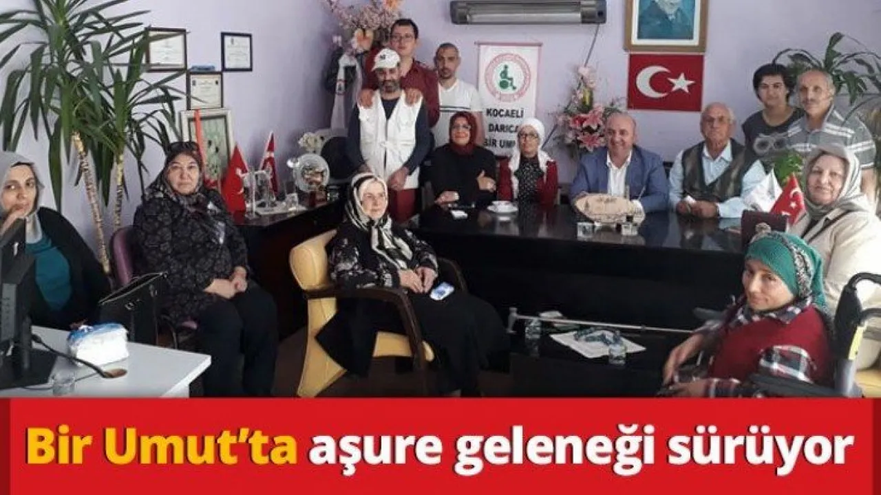 Darıca Bir Umut Engelliler Derneği, Muharrem Ayı nedeniyle geleneksel hale getirdiği aşure gününün bir yenisini tekrarladı. AKP Darıca İlçe Başkanı Muzaffer Bıyık ile ilçe yönetim kurulu üyeleri Nuran Kurşun ve Cüneyt Şentürk ile Kadın Kolları Başkanı ve Darıca Belediye Meclis Üyesi Hülya Kodek, Gebze Ticaret Odası Meclis Üyesi Sevgi Çiler, ilçe esnaflarından Yaren Tuhafiye’nin sahibi Fatma Akkoça’nın da aralarında bulunduğu çok sayıda kişinin ağırlandığı etkinliğe Darıca Yaşlılarla Dayanışma Derneği’nin yönetim kurulu üyeleri de katıldı. Darıca Bir Umut Engelliler Derneği Başkanı Melek Arikan ve yönetiminin ev sahipliğindeki günde Başkan Arikan’ın annesi Mehpare Demirel de ağırlandı. Başkan Arikan aşure günlerine gösterilen ilgi ve destekten ötürü tüm katılımcı ve destekçilere tüm engelliler adına teşekkür etti.