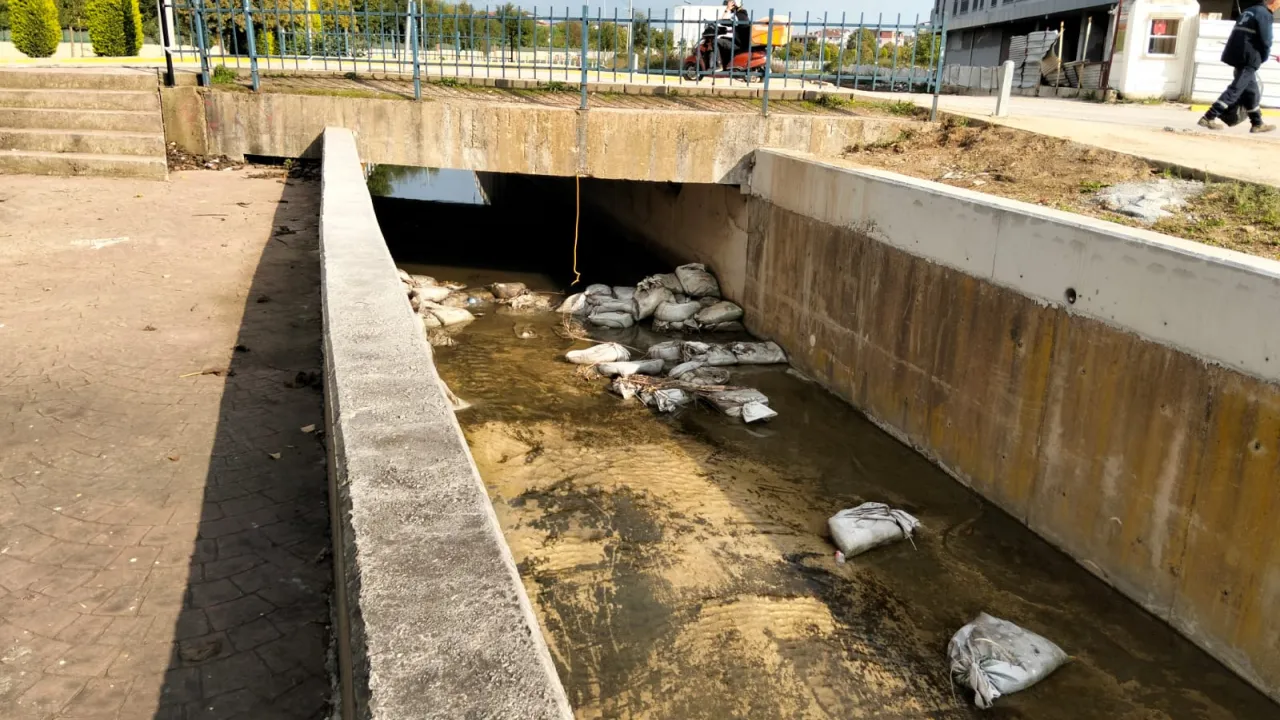 Kartepe Kule deresi içinde kum dolu onlarca çuval bırakıldı. Antik köfte önünde dere içinde yapılan çalışmada, su akışını geçici olarak engellemek için dereye konulan çuvallar kaldırılmadı. Geriye bu çirkin görüntü kaldı
