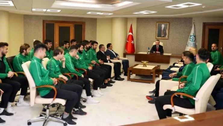 Başkan Büyükakın, 2. lig hedefi öncesi ilk zorlu deplasman olan Çorum yolculuğuna çıkmadan önce Kocaelisporlu futbolcuları, teknik heyeti ve idarecileri makamında kabul etti.