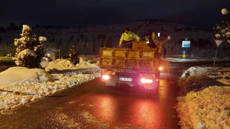 Kar yağışının başladığı ilk andan itibaren teyakkuzda olan Kocaeli Büyükşehir Belediyesi ekipleri, yoğun mücadelesine ‘buzlanma’ seferberliği ile devam ediyor. Kentin en yüksek yerleşim birimlerinde bile ulaşımın aksamamasını sağlayan ekipler şimdi de yağan kar sonrası ulaşım ve günlük hayatta aksaklık ve olumsuzluk yaşanmaması adına seferber oldu. Bu bağlamda Büyükşehir, Kocaeli genelinde olduğu gibi Gebze bölgesinde de kapsamlı ve özverili bir çalışma yürütüyor. Fen İşleri Dairesi Başkanlığı’na bağlı ekipler, 6 PTO, 2 Tuzlama Robotu, 3 JCB, 1 Greyder, 1 Loder, 4 traktör, 4 kürek ekibi (Gebze şehir merkezi caddeler için), 6 teknik personel ve 56 saha çalışanı ile 12 saatlik 2 vardiya halinde 7/24 buzlanmaya karşı kar küreme ve tuzlama çalışması gerçekleştiriyor.