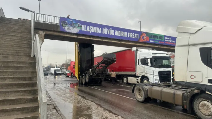 Kocaeli'nin Başiskele ilçesinde seyir halindeki bir kamyonun açılan damperi üst geçite çarptı. Çarpmanın şiddetiyle tından kopan damper üst geçitte asılı kaldı.