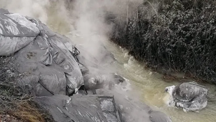 Atık maddelerin temizlenmesi kokuyu önlemeye yetmezken, 24 saat geçmesine rağmen duman çıktığı görüldü. Olayın ardından dere kenarında bulunan çalıların bile rengi değişti. Arslanbey Mahalle Muhtarı Sedat Topal, duruma isyan etti.