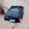 Kocaeli'nin Gebze ilçesinde sağanak yağışta dereye sürüklenen otomobil, bir gün sonra sahibi tarafından bulundu. Suların çekilmesiyle ortaya çıkan ve ekiplerce dereden çıkarılan araç kullanılamaz hale geldi.