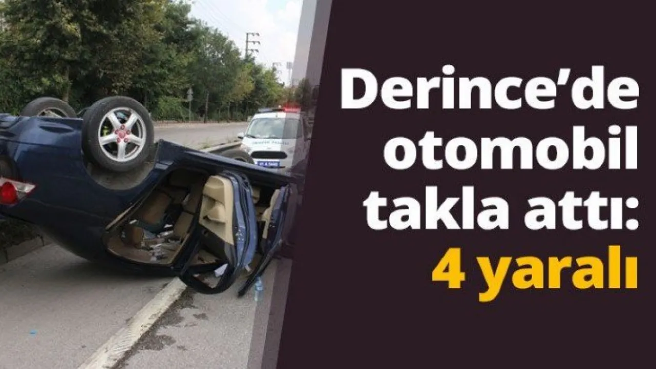 Derince D-100 karayolunda sürücüsünün direksiyon hakimiyetini kaybetmesi sonucu kontrolden çıkan otomobil orta refüje çarptıktan sonra takla atarak yüz metre sürüklendi. Kazada yaralanan 4 kişi ambulansla hastaneye kaldırılarak tedavi altına alındı.