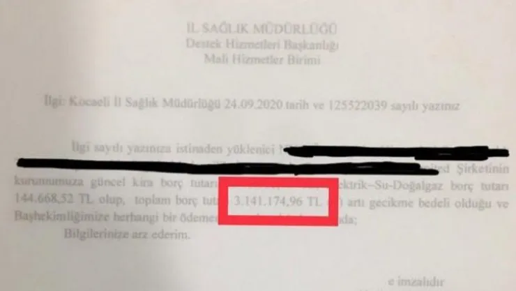 Kocaeli'de çok önemli bir devlet kurumunun kantinini işleten bir firmanın borcunun 3 milyon 141 bin lirayı geçtiği halde borcunu ödemediği ve hala faaliyetlerine devam ettiği öğrenilirken firmanın aynı zamanda elektrik, doğalgaz, su borcundan kaynaklı 144.668 liralık diğer borçlarını da ödemediği ortaya çıktı.