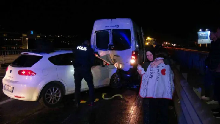 Kaza, İzmit ilçesi Yahyakaptan Mahallesi İzmit - Kandıra Yolu üzerindeki köprülü kavşakta meydana geldi. Edinilen bilgiye göre, Karamürsel’deki bir düğünden ayrılan E.A. idaresindeki 06 CUJ 582 plakalı Volkswagen markalı servis minibüsü, içerisindeki yolcularla beraber Ankara’ya dönmek üzere yola koyuldu. Sürücü, TEM Otoyolu’na giden yol ayrımını kaçırdı. Ardından, kaçırdığı yol ayrımına girmek için geri geri hareket etmeye başladı. O sırada seyir halinde olan D.B. idaresindeki 38 LE 677 plakalı Seat marka otomobil yavaşlayamayarak minibüse çarptı. Çarpışma neticesinde her iki araç da sürüklendi. Kazayı görenler durumu 112 Acil Çağrı Merkezine bildirince olay yerine itfaiye, sağlık ve polis ekipleri sevk edildi. Kısa sürede adrese ulaşan itfaiye ekipleri sıkışma olmadığını bildirirken yaralıların ambulansa taşınması için sağlık ekiplerine yardımcı oldu. Kazada 2’si çocuk toplam 6 yaralı hastanelere kaldırıldı. Kazanın ardından servis minibüsündeki yolcular Kocaeli Büyükşehir Belediyesi İtfaiyesi’ne ait bir araçla Kocaeli Büyükşehir Belediyesi Misafirhanesi’ne tahliye edildi. Sürücü E.A. ise ifadesi alınmak üzere polis merkezine götürüldü. Kazalı araçların çekilmesinin ardından trafik normal seyrine döndü.