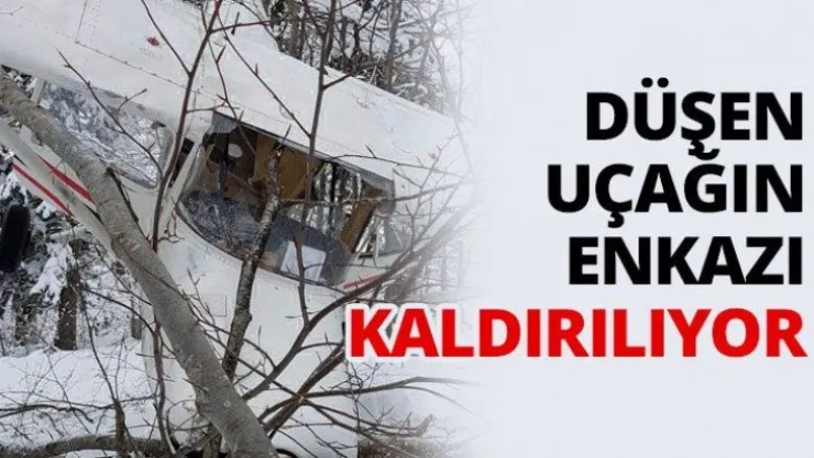 Düşen uçağın enkazı kaldırılıyor