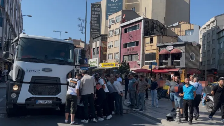Tekirdağ Çorlu'da Tekirdağ Büyükşehir Belediyesi Su ve Kanalizasyon İdaresi'ne (TESKİ) ait vidanjörün ezdiği motosiklette, sürücü kazayı kıl payı yara almadan atlattı.