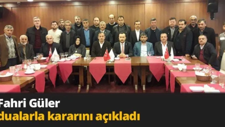 Tütünçiftlik Çınar Park Otel’de düzenlenen yemekli toplantıda kararını açıklayan Fahri Güler, dua ve destek istedi. Toplantıya, Körfez Muhtarlar Dernek Başkanı Yusuf Yanar, mahalle muhtarları, Körfez Taşköprülüler Dernek Başkanı Ceyhun Atik, Kocaeli Taşköprülüler Dernek Başkan Yardımcısı Fevzi Ergün, çok sayıda Taşköprü sakini katıldı. Yemek sonrasında dualar edildi ve Fahri Güler, yaptığı görüşmeler sonrasında siyasi ve aile büyüklerinin olurunu alarak aday adaylığını açıkladığını söyledi. Fahri Güler açıklamasında, “Cumhurbaşkanımız gençlerin yedek kulübesinde oturmaması gerektiğini söylemişti. Bu mesaj doğrultusunda Körfez için çalışmak ve hizmet etmek amacıyla Belediye Meclis Üyeliği için aday adayı olmaya karar verdim” dedi. Dua ve desteklerle aday adaylığını açıklayan Fahri Güler, hafta sonunda AKP Körfez İlçe Komisyonundan randevu alarak dosyasını teslim edecek.